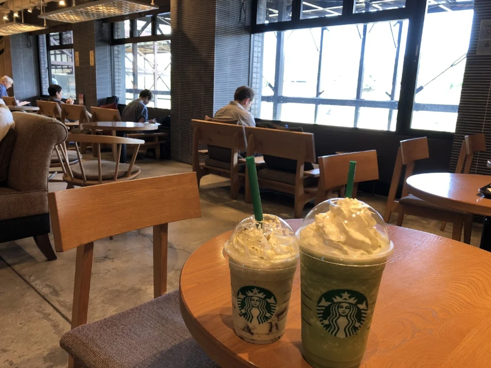 Wherever you go, in most developed countries, you can find a Starbucks. The Starbucks on Sanjyo-Oohashi, is on the bank of the Kamo river, and has a decent view. It was summer, so there was a limited edition iced drink available. The special drink is the one on the left, which is a roast tea latte with tea flavoured jelly sticks inside. The drink on the right is a Matcha latte, which isn’t as sweet as the Matcha lattes you can get in the west.